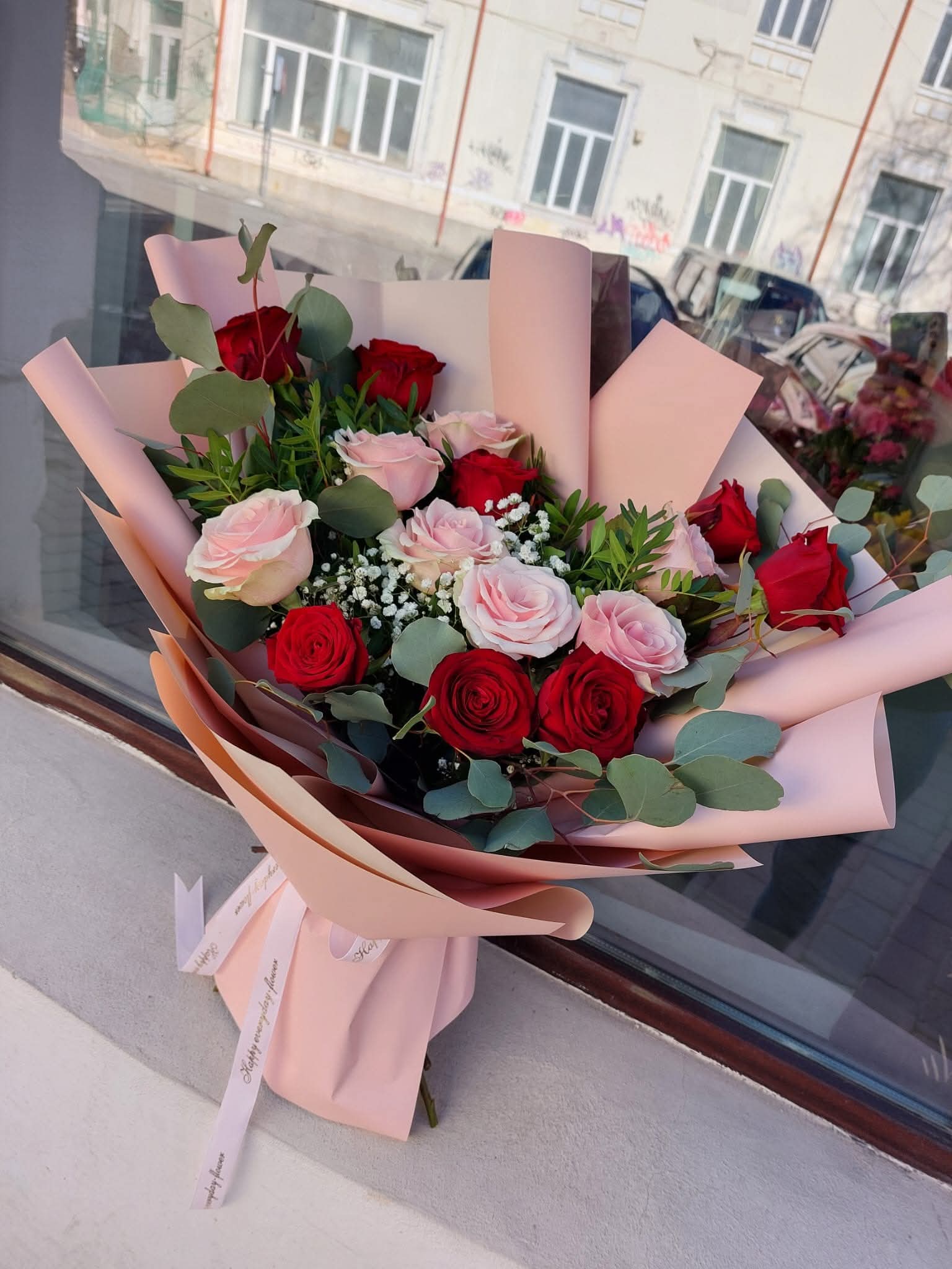 15 trandafiri roșu și roz
