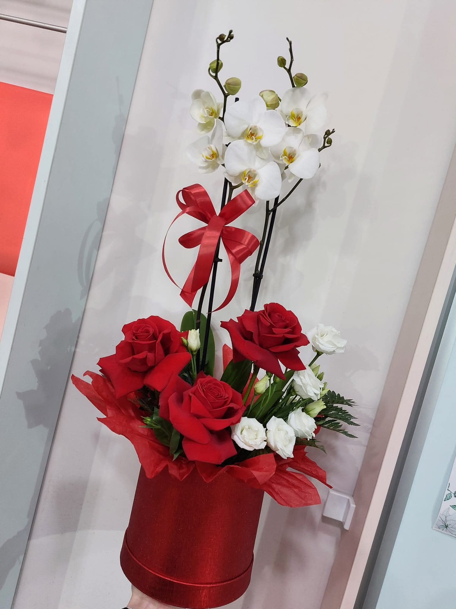 Cutie mix-orhidee phalaenopsis (ghiveci)+trandafiri+lisianthus